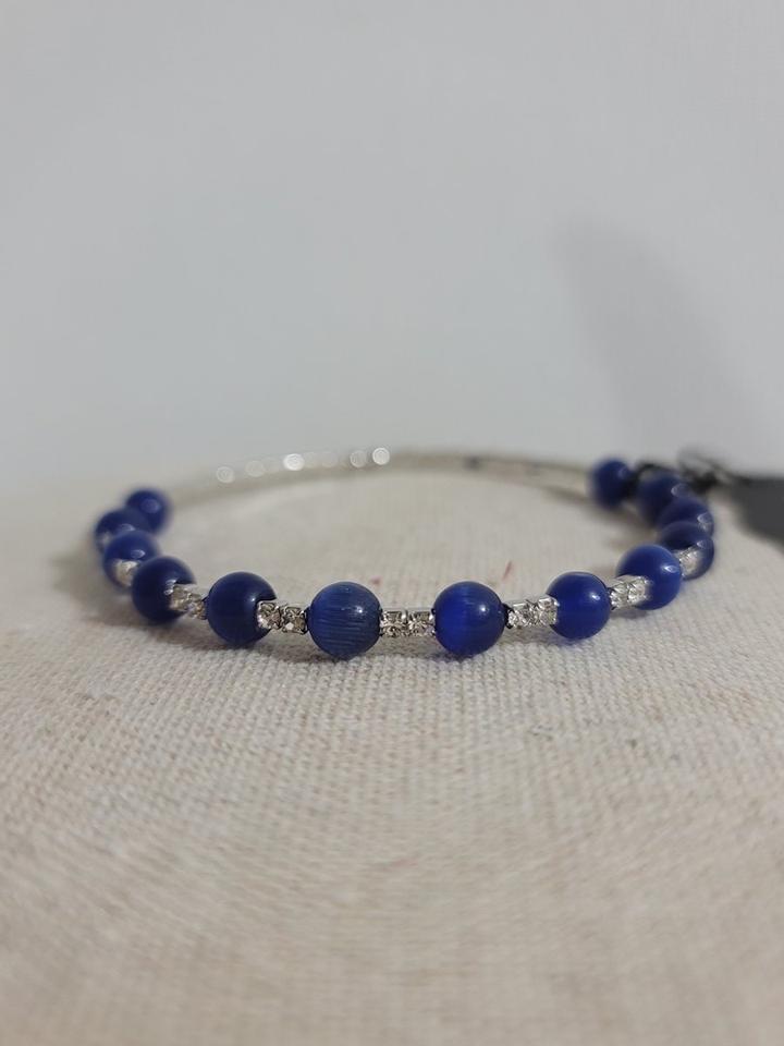 Beautiful memory wire bracelet with Blue Moon Stone Beads and Tiny White Rhinestones.